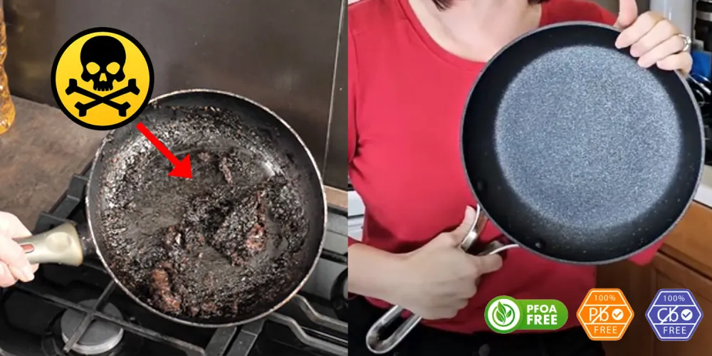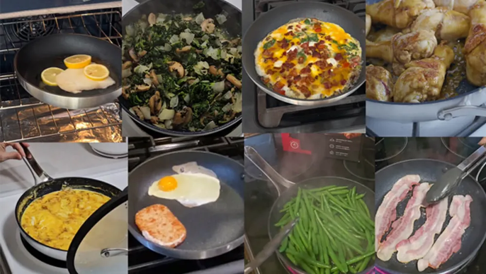 ✅ Advanced non-stick. This pan has a patented 3-layer non-stick coating made from aerospace-grade materials, developed and tested by actual chefs. These tests include real-world scenarios like frying an egg or preparing vegetables. Most companies will lie, saying NOTHING will ever stick to your pan.